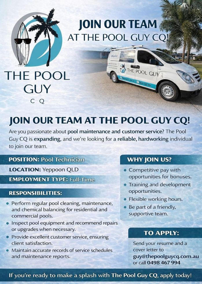 To book a pool cleaning service or inspection, contact The Pool Guy CQ on 0498 467 994.